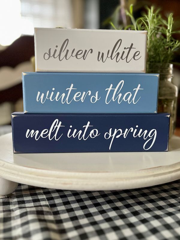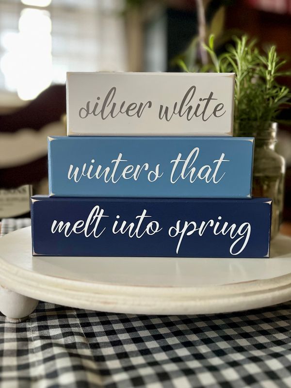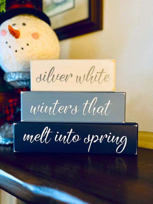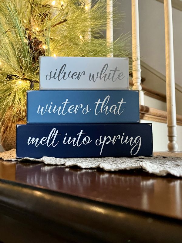 Looking for something to fill in after all the Christmas decorations come down? This “Silver White Winters” sign is a perfect choice for winter into spring. Definitely a favorite thing.