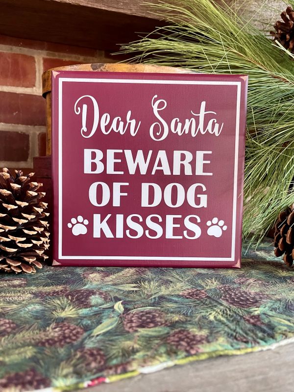 A reminder to Santa. Fun Christmas sign for the home of a dog family.